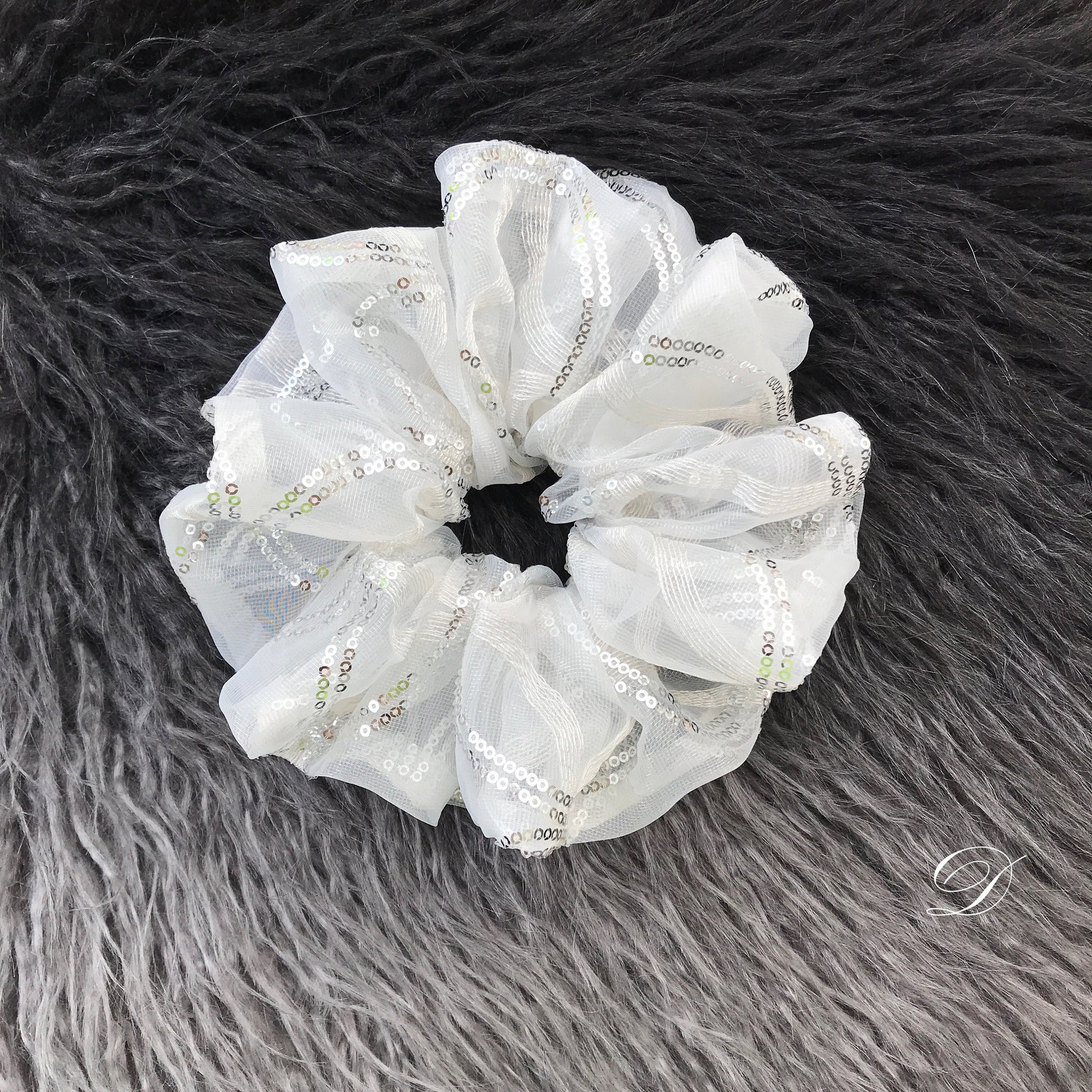 Crystal Scrunchies, Embroidered Fabric With Glitter, Ponytail Holders, Bun Holders, Unique Scrunchies, White, Gift For Women, Gift For Girl